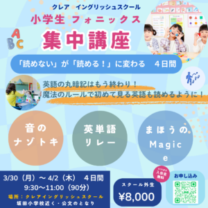 【新小1〜6対象】「読めない」が「読める!」に変わる!4日間のフォニックス集中講座
